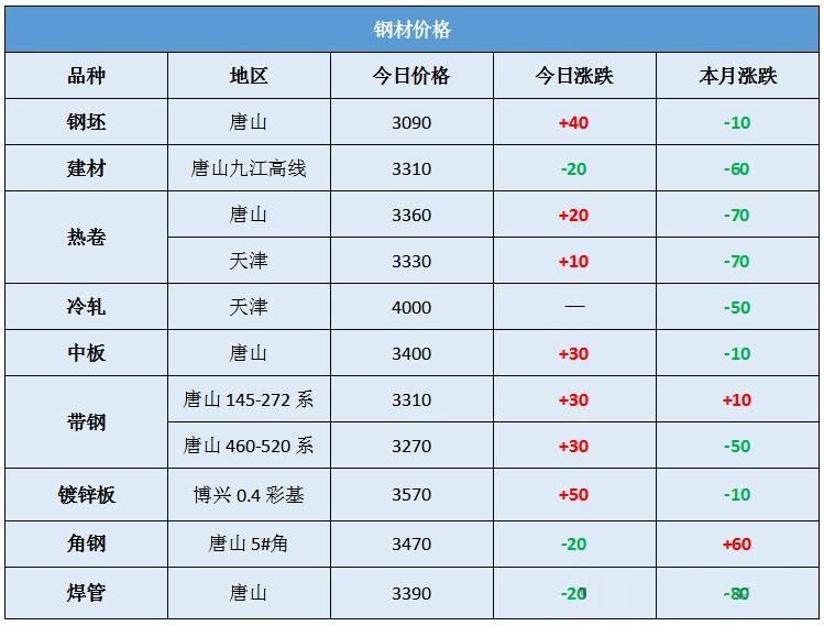 原料方面,唐山铁精粉市场趋弱10元运行;焦炭第十轮提降全面落地,截止目前累降500-550元/吨。下游成材方面,主流价格涨稳跌互现,整体成交量陆续有所释放。
