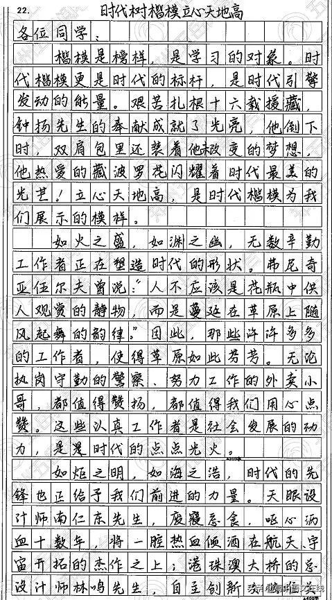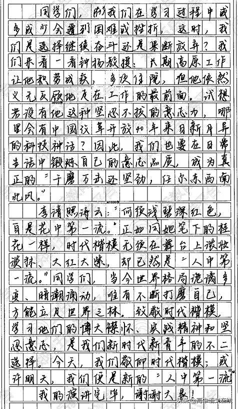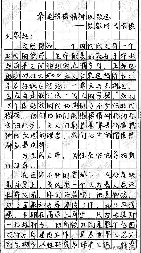 2020年全国各地名校模考作文(20)“致敬时代楷模”为主题演讲稿