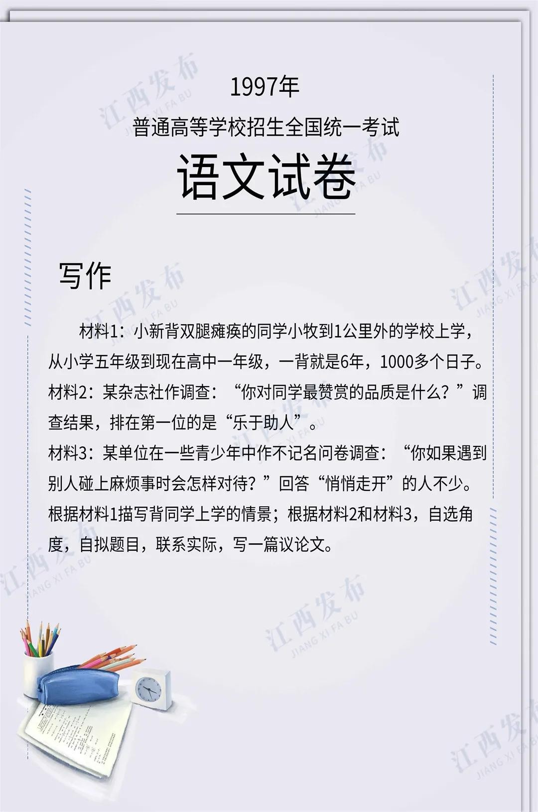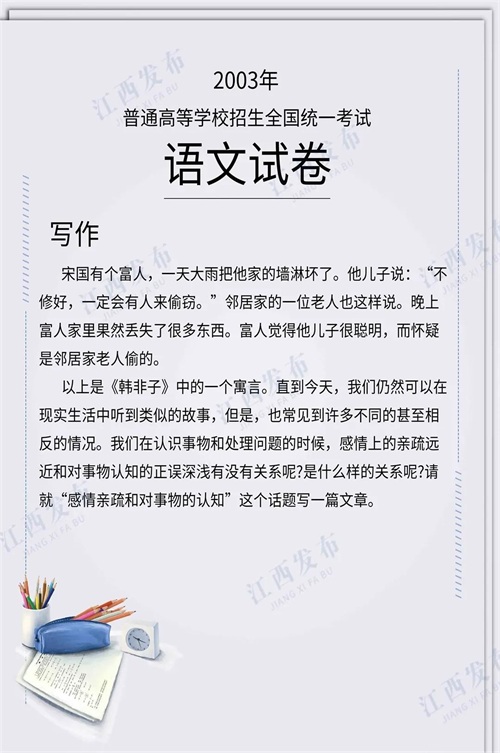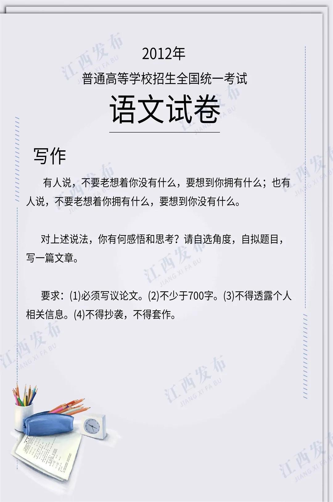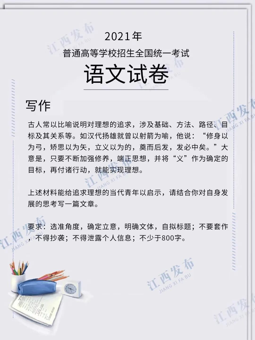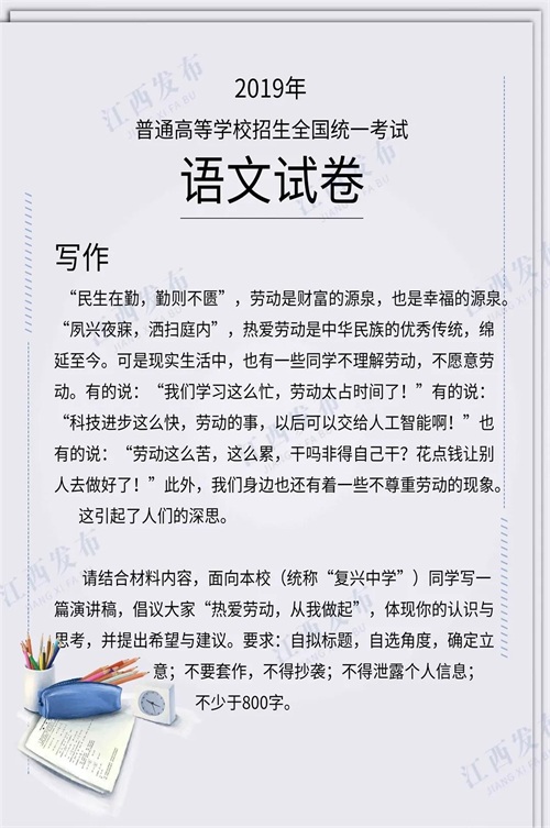 刚刚,2024年江西高考作文题公布!