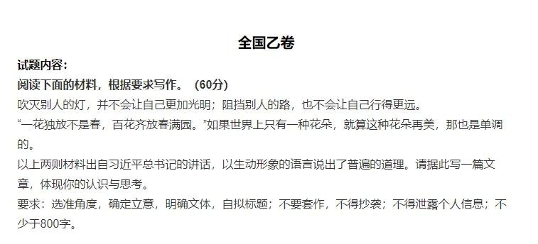 每年的高考作文题