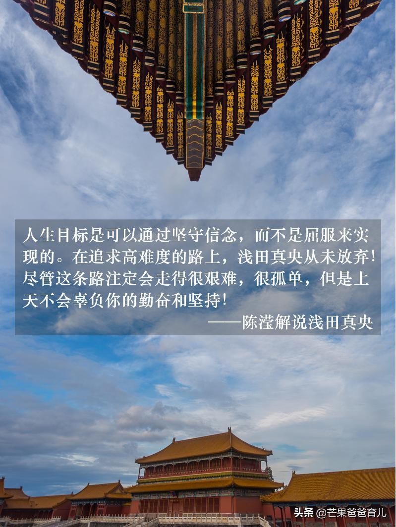 “人生目标是可以通过坚守信念,而不是屈服来实现的。在追求高难度的路上,浅田真央从未放弃!尽管这条路注定会走得很艰难,很孤单,但是上天不会辜负你的勤奋和坚持!”