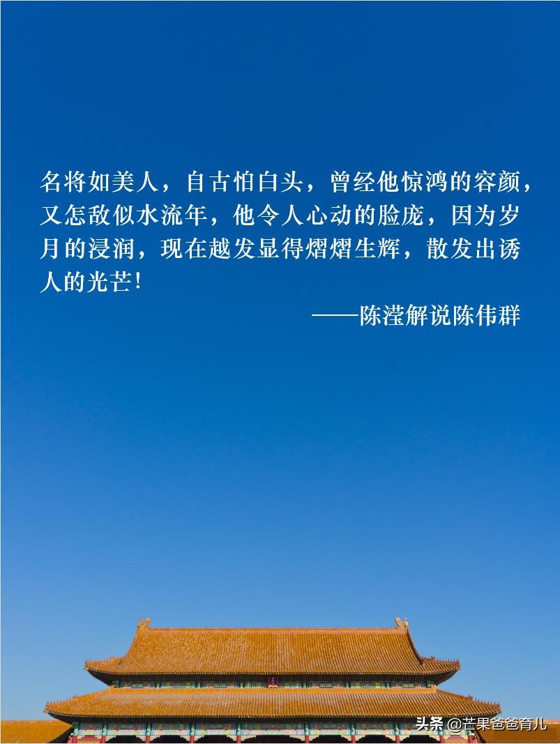 “名将如美人,自古怕白头,曾经他惊鸿的容颜,又怎敌似水流年,他令人心动的脸庞,因为岁月的浸润,现在越发显得熠熠生辉,散发出诱人的光芒!”