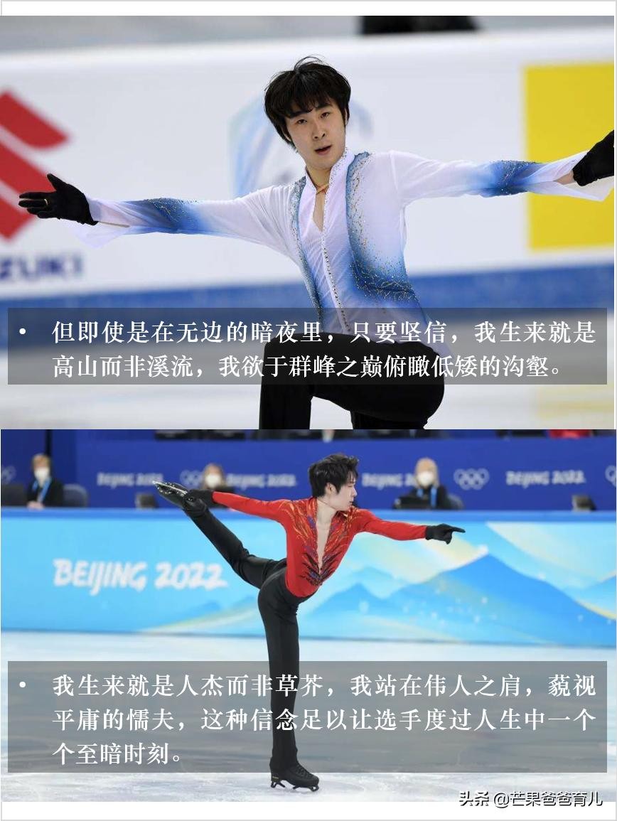 “金博洋,浴火重生。年少成名的他曾经两次登上世界锦标赛的领奖台,到达过中国男单从未企及的高度。但即使是在无边的暗夜里,只要坚信,我生来就是高山而非溪流,我欲于群峰之巅俯瞰低矮的沟壑。我生来就是人杰而非草芥,我站在伟人之肩,藐视平庸的懦夫,这种信念足以让选手度过人生中一个个至暗时刻。北京冬奥会,金博洋战胜了金博洋。”