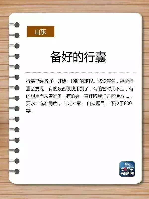 泰山晚报:“我的行囊”,人的一生中,有的准备了用不到,有的需要没准备好。有考生出场后直呼,问君能有几多愁”……